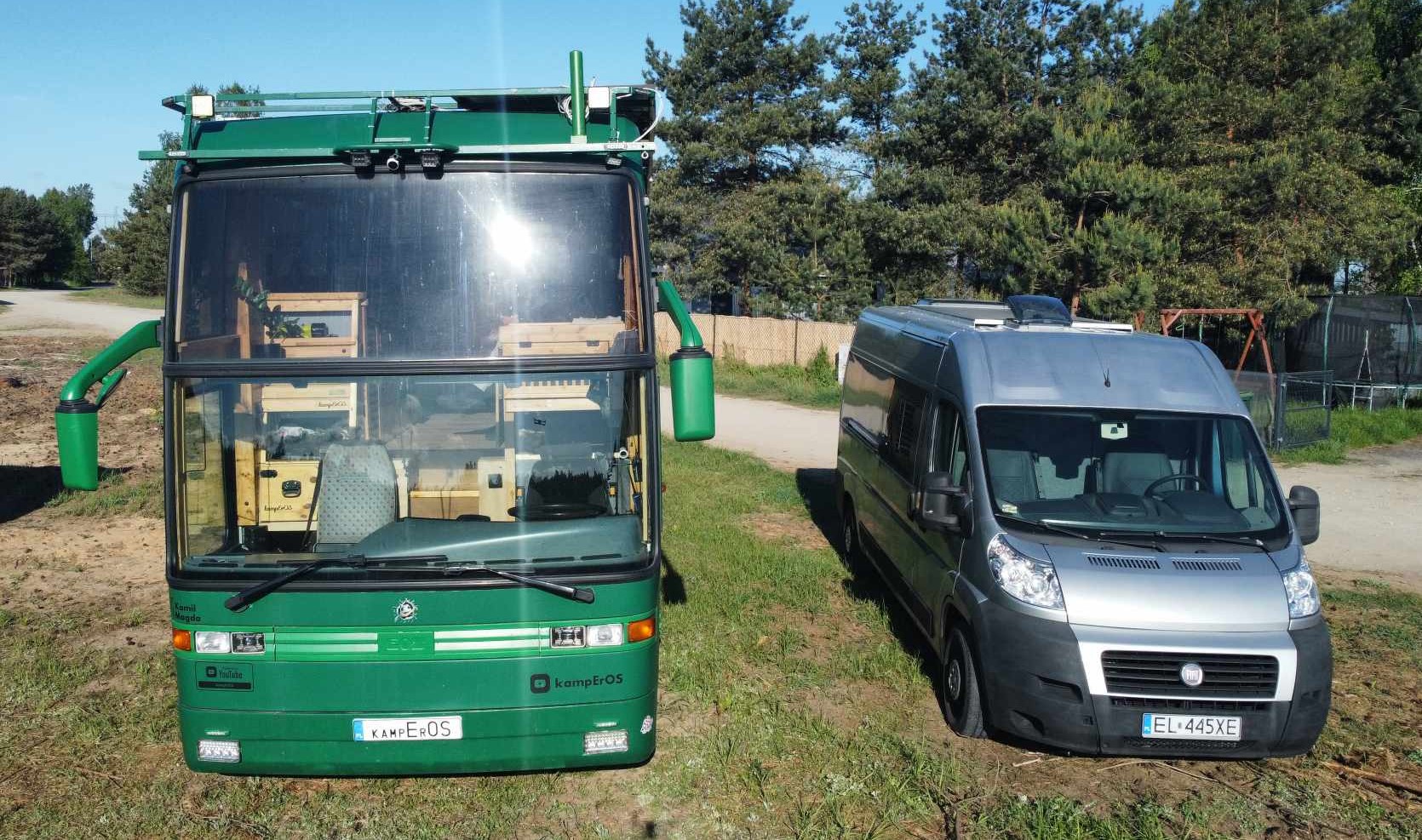 Osoba Kamila i jego Kamperos były inspiracją i głównym (choć nie najważniejszym) motywem do podjęcia przeze mnie decyzji o budowie własnego domku na kółkach. I stało się. Nabyłem drogą kupna DAF’a SB3000 ATI i rozpocząłem prace. Obecnie, na dzień dzisiejszy poza wykończeniem i bez ozdóbek, mój Dafik jest zdatny do zamieszkania (chociaż prace nadal trwają). Wewnątrz gotowa jest: pełna elektryka 12VDC, 24VDC oraz 240VAC, dwie przetwornice (4000W i Step Down) i agregat 2500W, dwa panele po 575W każdy z inwerterem 3kV do 8 bateri po 100 Ah GEL każda. To zapewnia mi autonomię do 10 dni, mniej więcej. LifePo to dla mnie przyszłość. Filtracja, woda ciepła i zimna na pompie 4 Bary, dwa depozyty po 300 litrów każdy (jeden do wody pitnej, drugi do wody szarej/czarnej. To jest około tygodnia autonomii bez specjalnego oszczędzania) gaz, kuchnia (4 metry blatu, w tym dwukomorowy zlew z ociekaczem 60x100cm oraz cztery palniki 60x60cm), część dzienna, sypialnia z łóżkiem o wymiarze King, pełne oświetlenie LED (prawie 400W ogółem rozdzielone na pięć obwodów oświetleniowych) i pełnowymiarowa łazienka z WC (100×200 cm). Dodatkowo trwają prace nad klimatyzacją (robię ją sam we własnym zakresie). Brak jest ogrzewania bo w moim kraju nazimniejsze dni to około 7- 8 st na plusie i to też tylko w godzinach porannych lub wieczornych. Potem temperatura wzrasta do 12-16 stopni. To w „zimę”. A słońca mam pod dostakiem przez około 300 dni w roku (to nie jest Polska). Mam też pełnowymiarową pralkę oraz zwyczajną lodówkę. Obie 240 VAC. Przed rozpoczęciem przebudowy był to turystyk 57 miejsc o wadze własnej niespełna 12 ton. Silnik DAF 14 litrów (nie jestem pewny jakiej mocy ale daje czad). Rocznik 98. Zarejestrowany, ubezpieczony i z aktualnymi badaniami technicznym jest zatankowany, i w pełni mobilny.